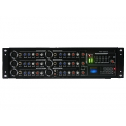 Μικροφωνικός μίκτης 6 καναλιών με ενισχυτή 2 x 150W RMS. Η κονσόλα διαθέτει 48 Volts phantom power, USB player, Bluetooth για σύνδεση μέσου κινιτού τηλεφώνου και υπολογιστή Laptop, ισοσταθμιστής 5 καναλιών.